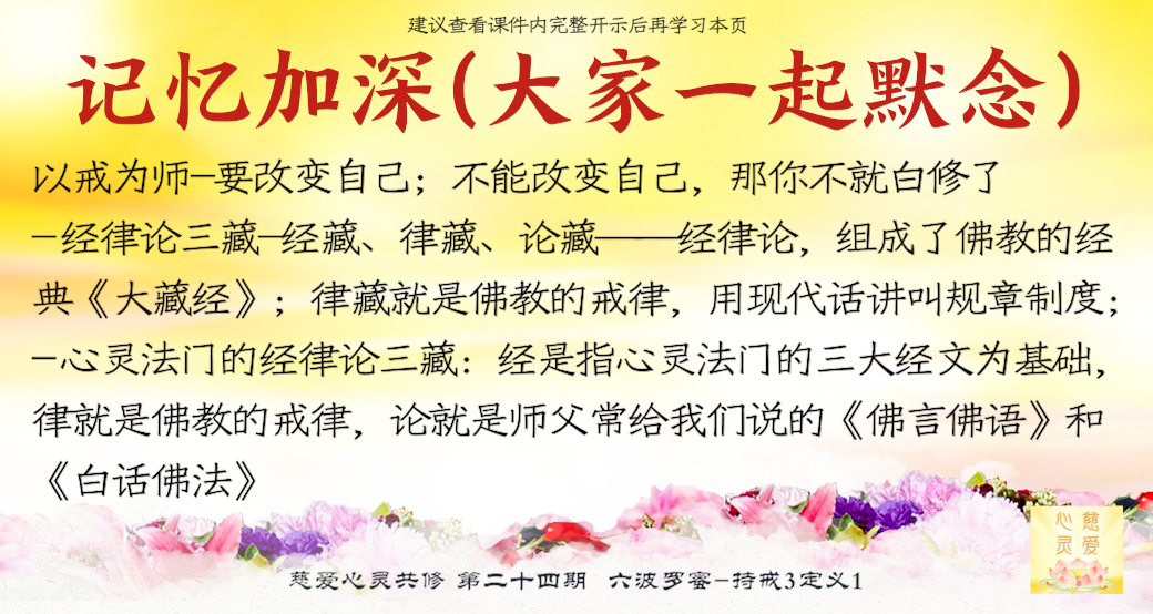经是指心灵法门的三大经文为基础,律就是佛教的戒律,论就是师父常给我们说的《佛言佛语》和《白话佛法》
