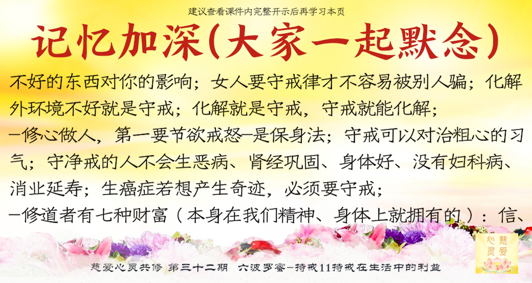 自律,眼睛不要乱看人,心中不要去想这些事情,就会在这方面有功德;要戒,戒哪方面,你就会得到哪个方面。举个简单例子:人家都在吃东西,你在边上不吃,一直拿着盆子,让人家先吃。人家肯定说:“你先过来”,这叫戒。你上辈子欠了那么多情债,这辈子只有多念心经,礼佛大忏悔文,才能还掉这些情债